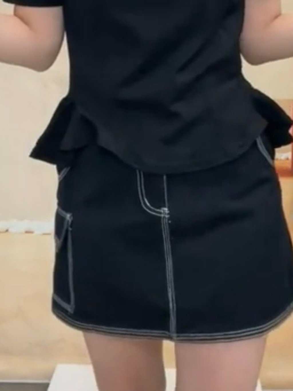 B624 黑 明車線牛仔裙