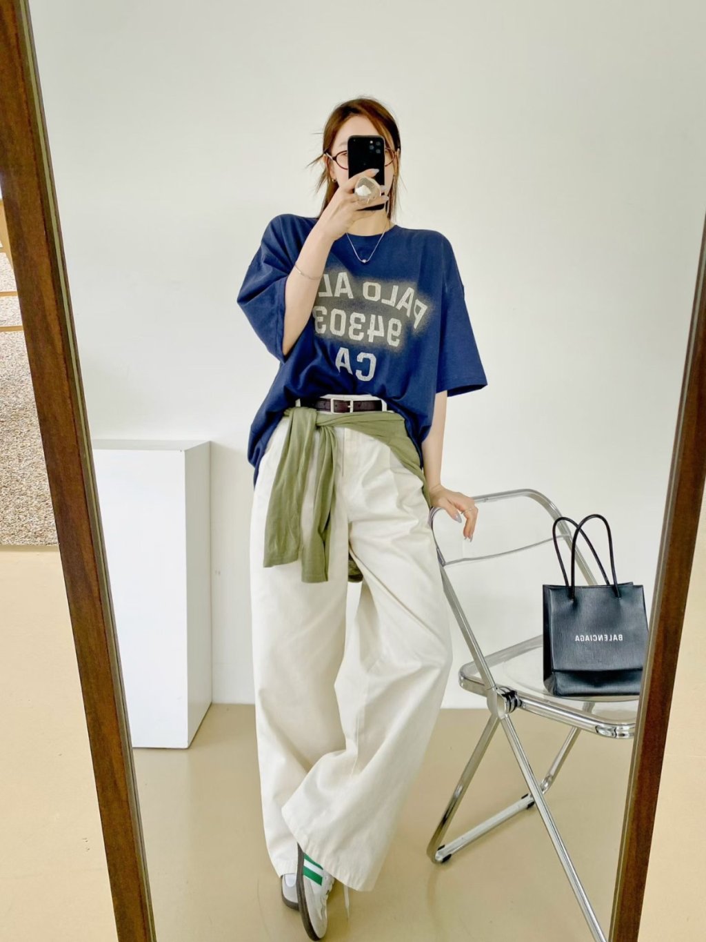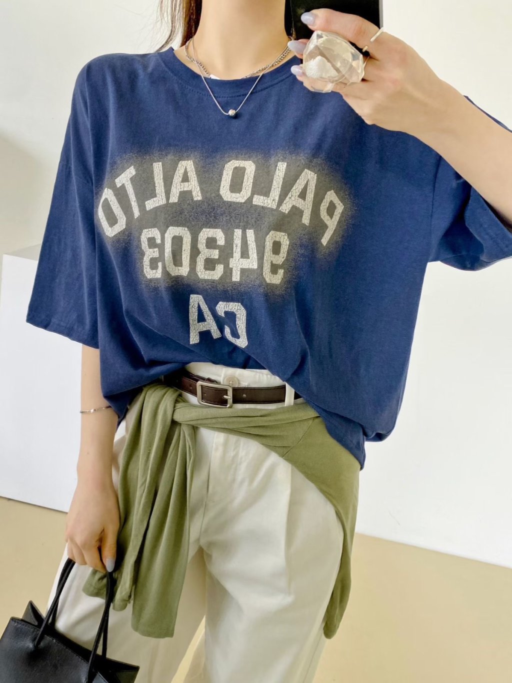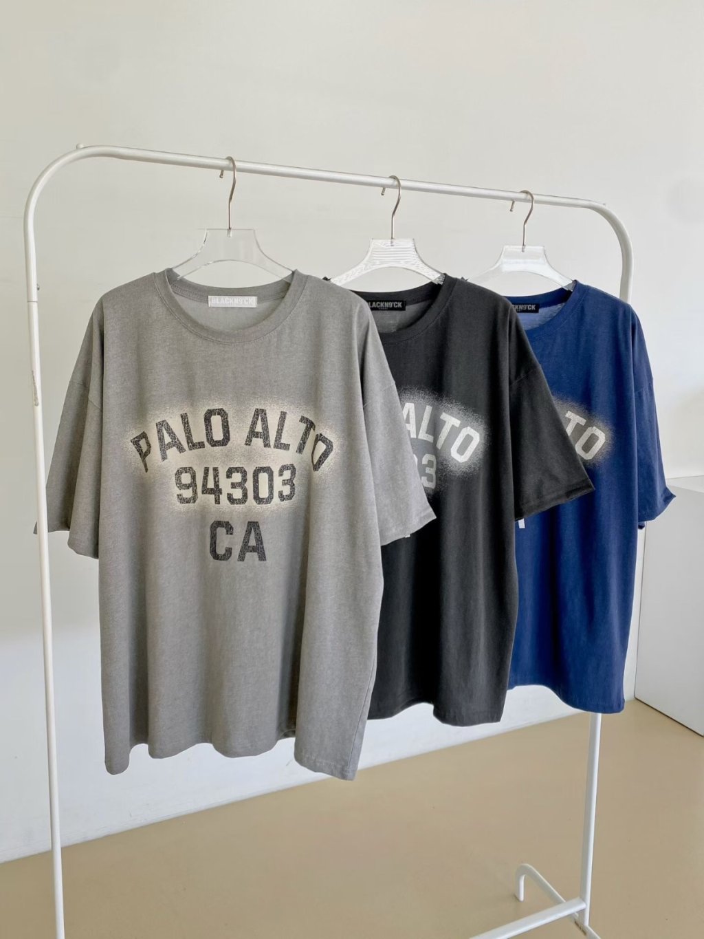H011 淺灰/深灰/藍 PALO字鬆身tee