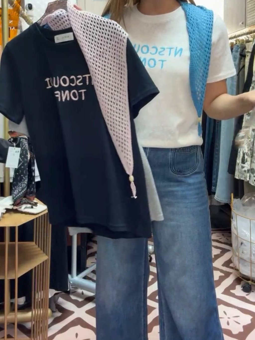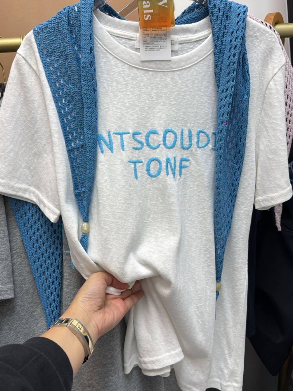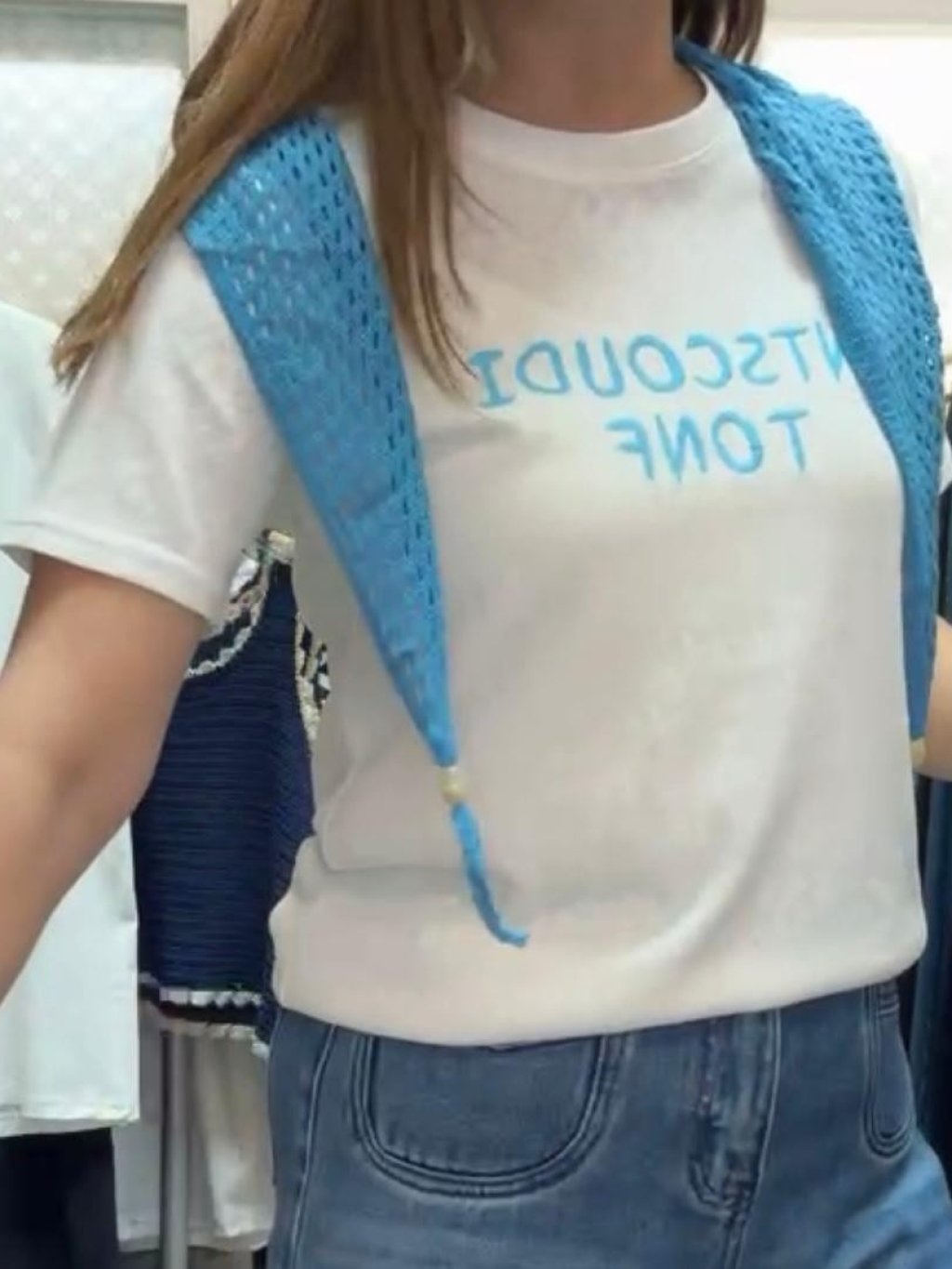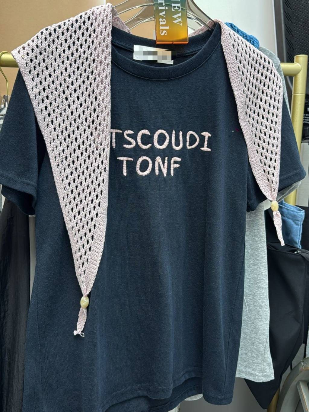 主頁 E919 灰/白/深藍 披肩+tee set