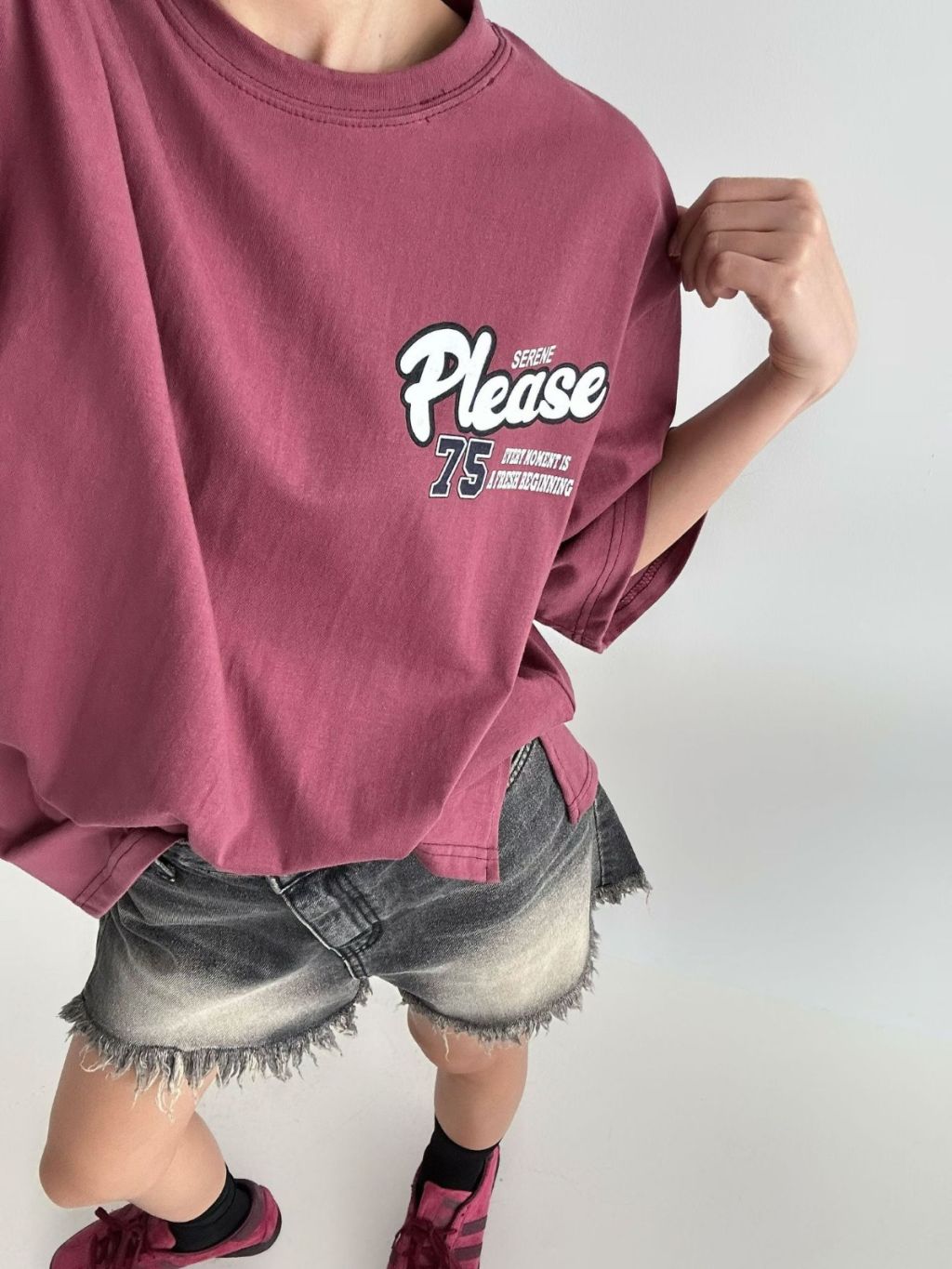 H019 白/藍/紅/灰 tee
