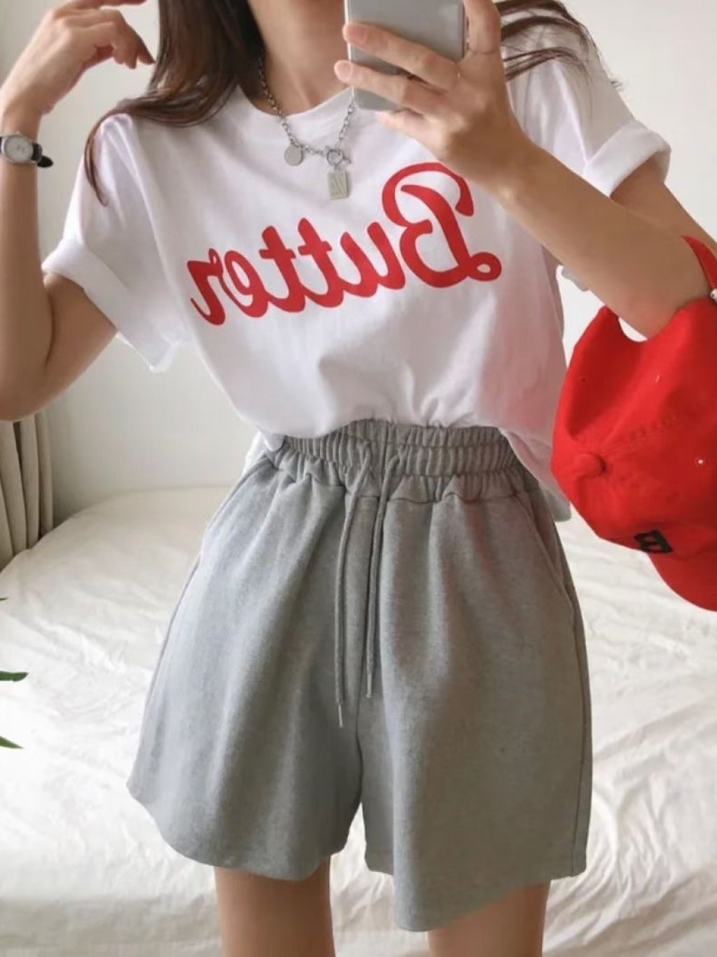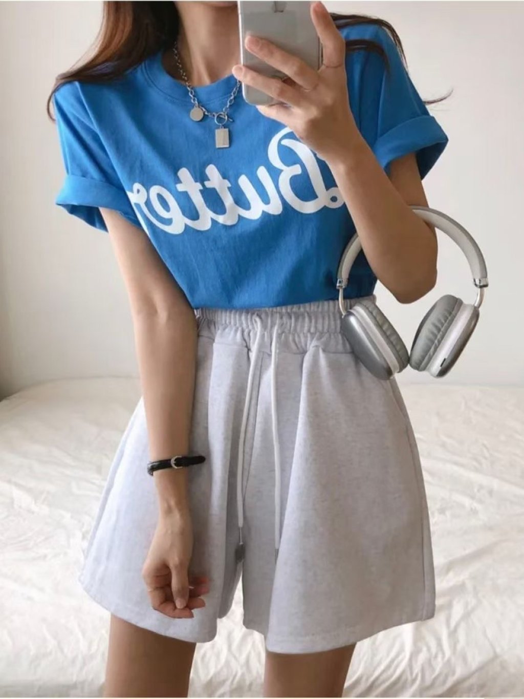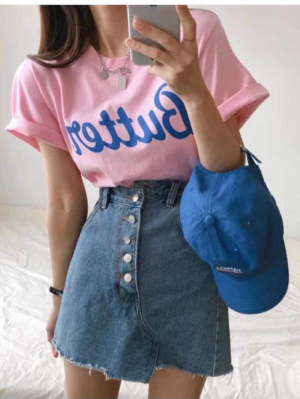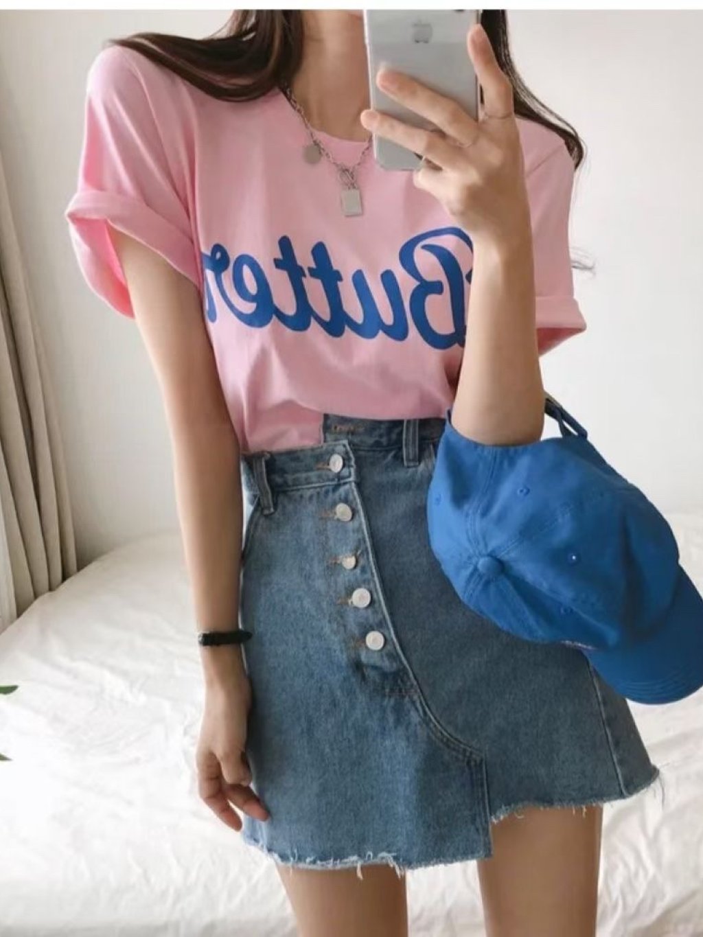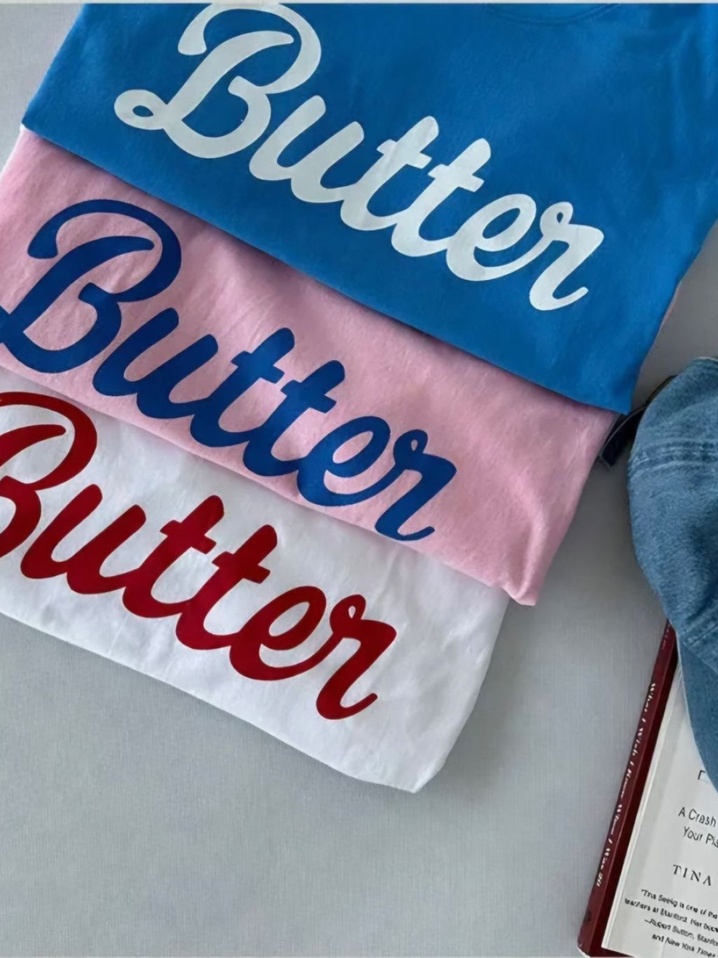 H033 藍/粉/白 butter字tee