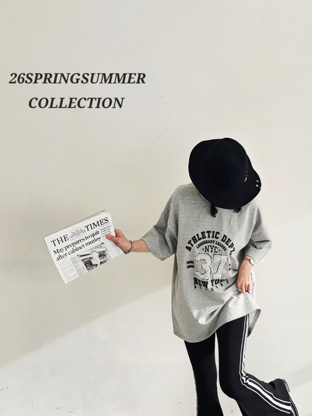H035 黃/藍/灰 37lace字大tee