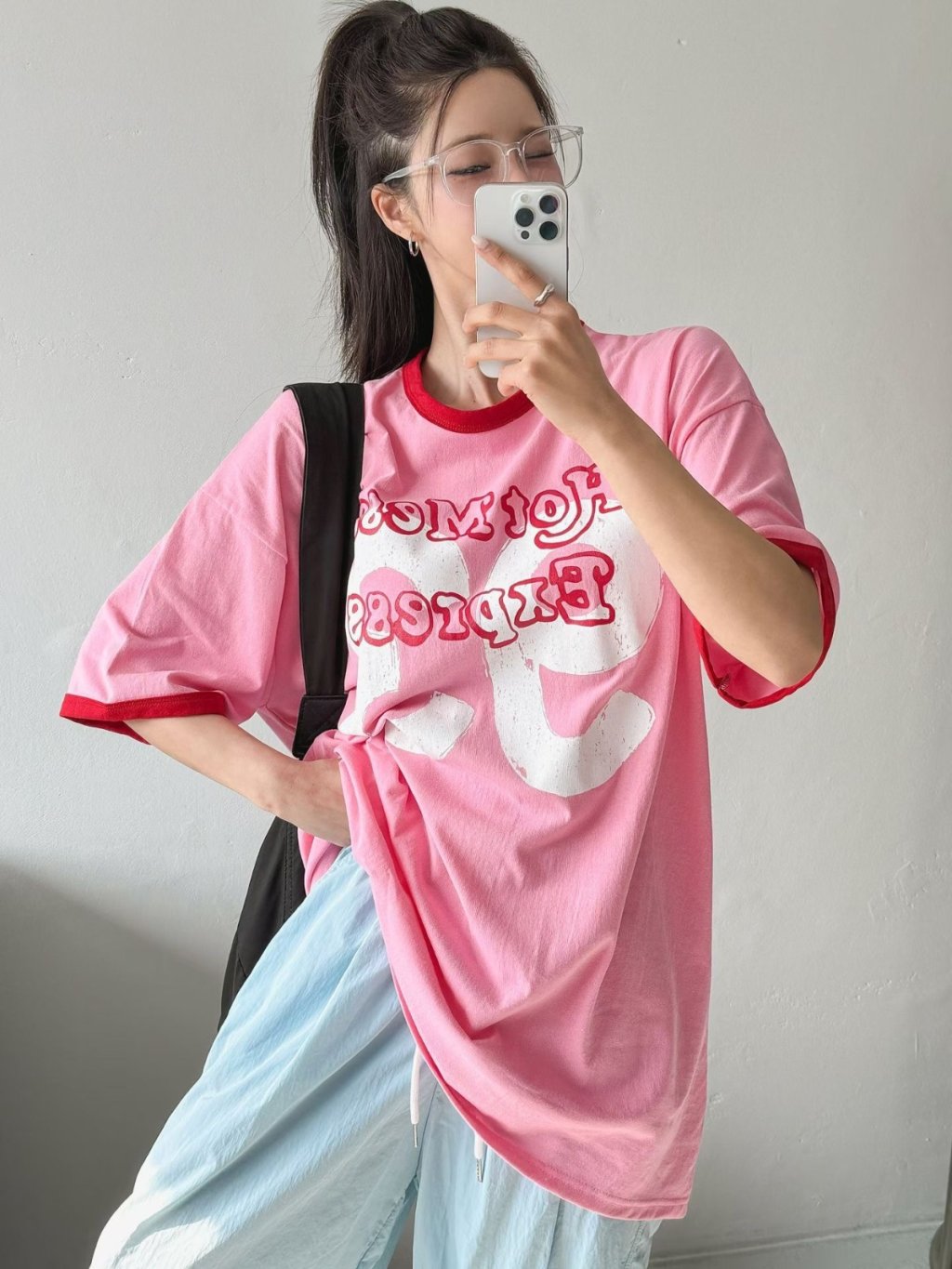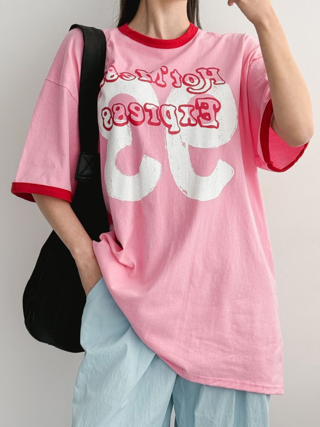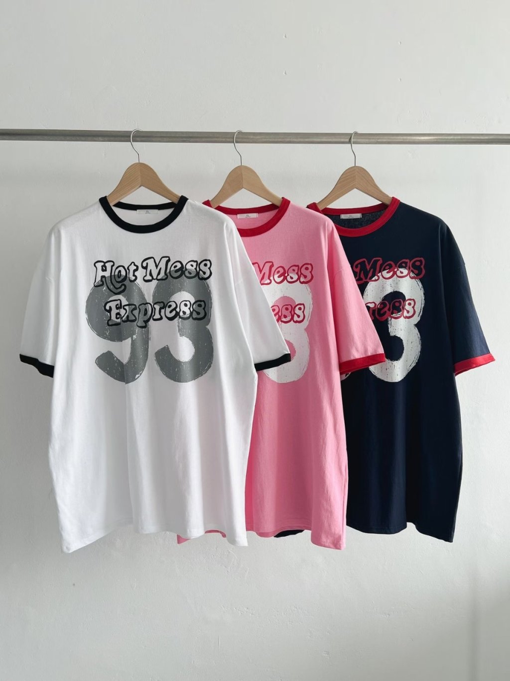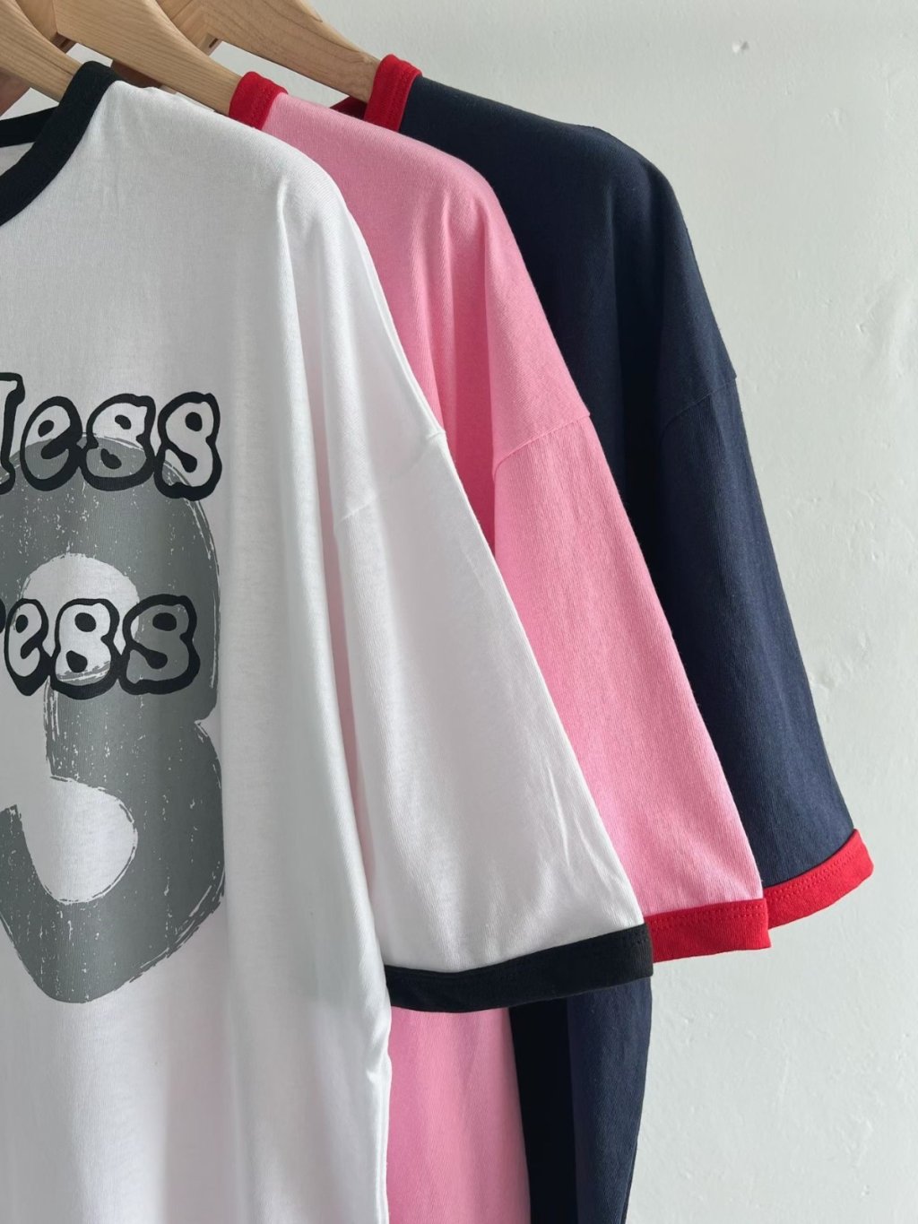 H038 白/粉/深藍 93字鬆身tee