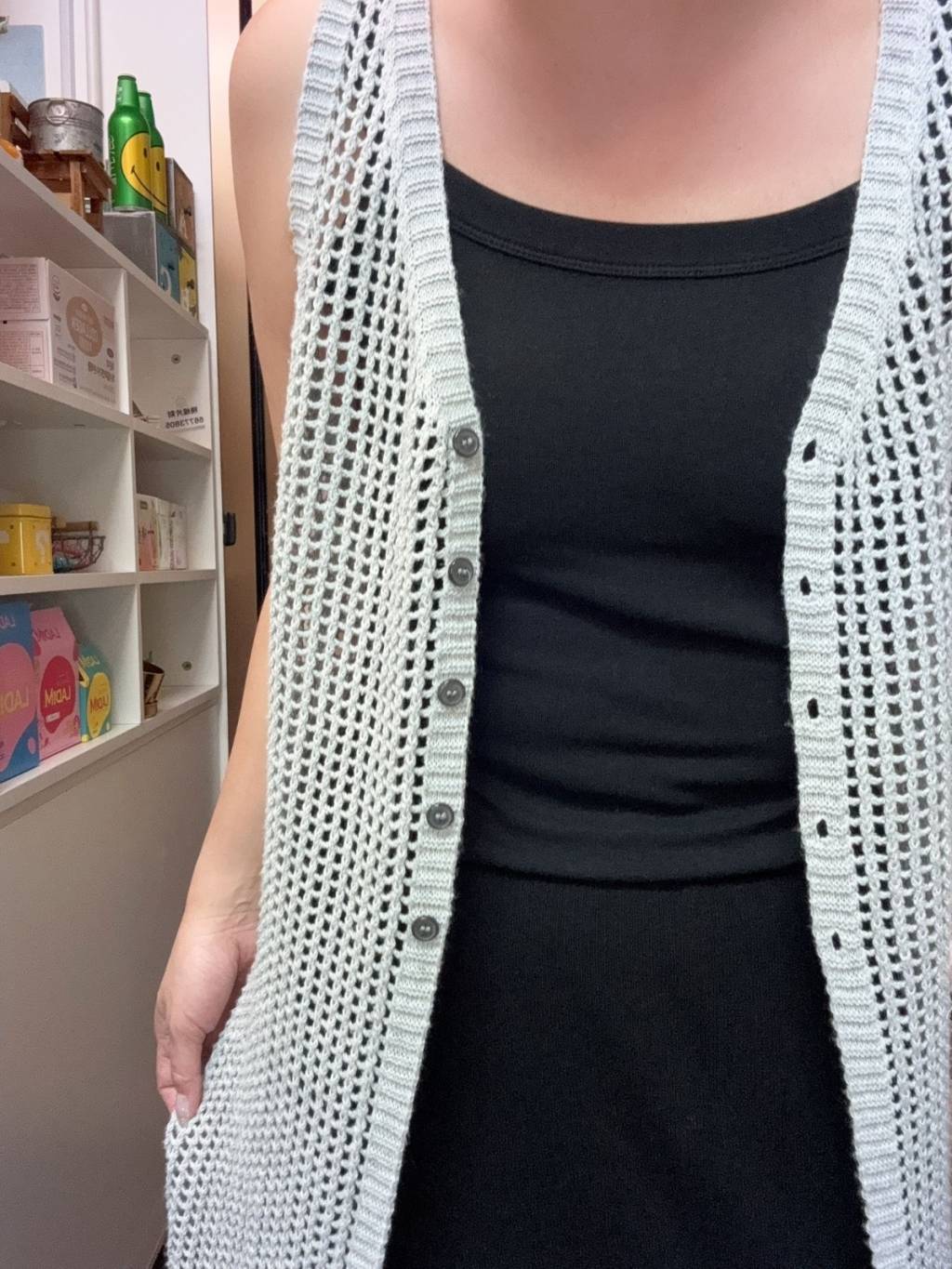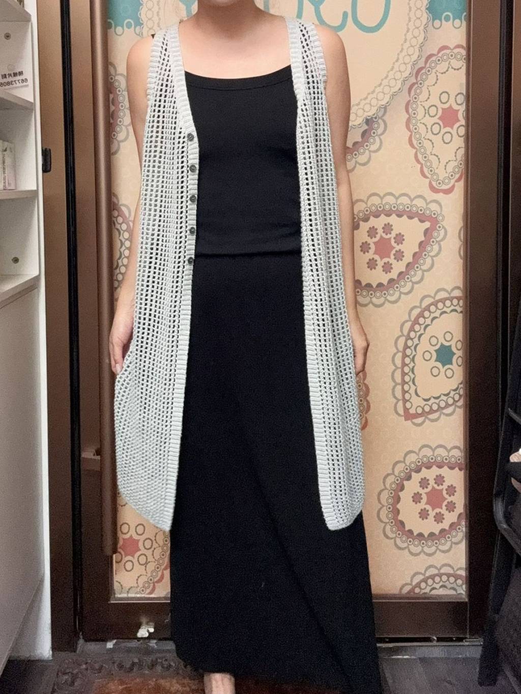 H053 灰色針織背心長外套