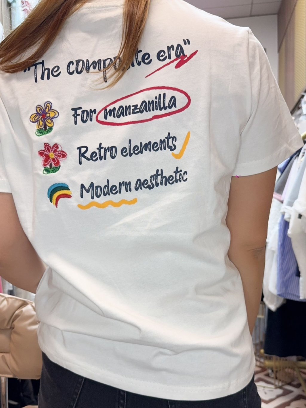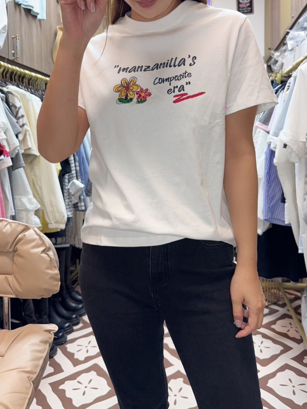 主頁 H068 刺繡花花白tee