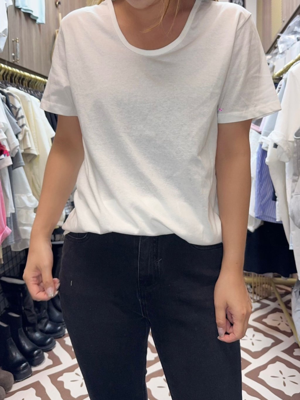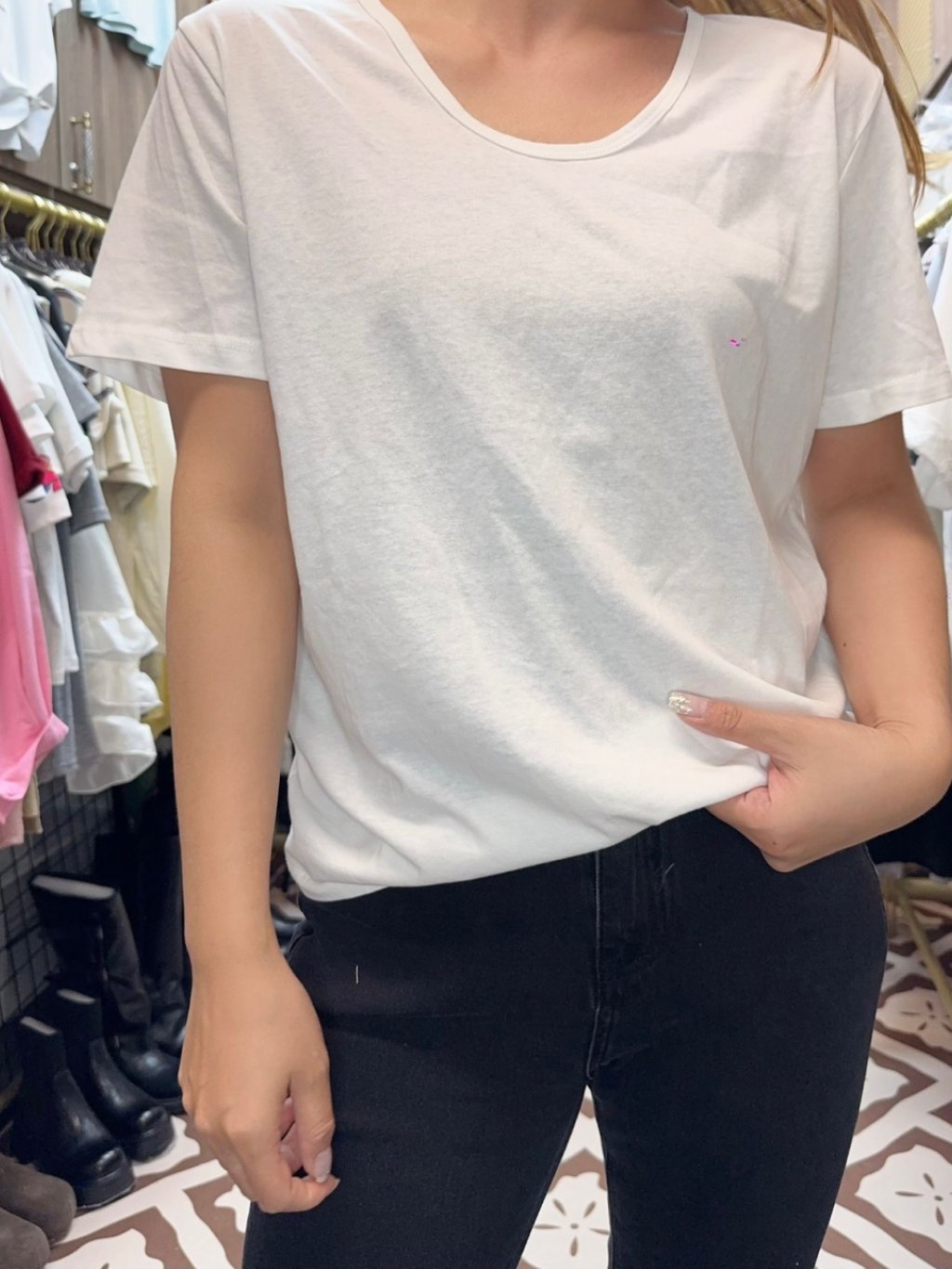 H073 白色薄淨tee